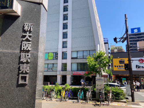 JR新大阪駅東口南出口から、OiTOKのあるユニゾーン新大阪が見えます。