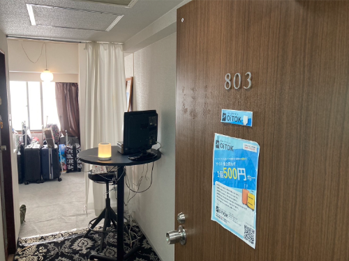 8Fでエレベーターからお降りください。 降りたら廊下を左側へ進んでいただき、803号室を目指します。 803号室は左手にございます。